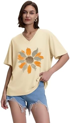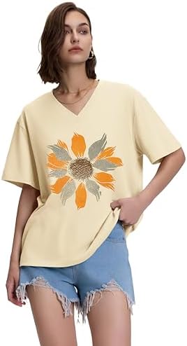ADOREJOY Oversized Tshirts for Women V Neck Summer Short Sleeve Casual Loose Tunic Tees