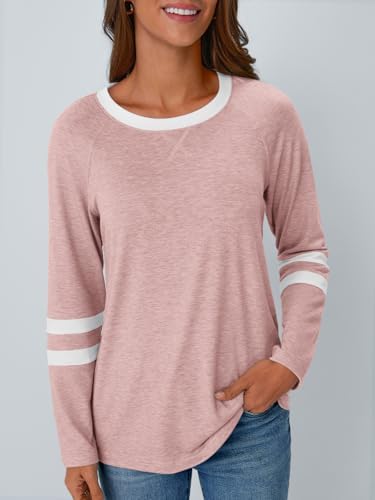 AUTOMET Womens Long Sleeve Shirts Color Block Casual Crewneck Tops Tshirt Basic Tee Fall Fashion Clothes Trendy Outfits