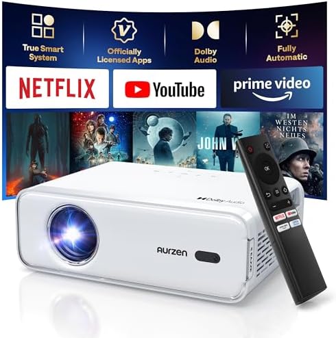 EAZZE D1 Smart Projector with WiFi and Bluetooth, Netflix-Officially-Licensed, Auto Focus & Keystone, DoIby Audio, Zoom, Native 1080P Movie, Portable Outdoor Mini Projector, White