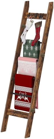 Blanket Ladder Shelf for Living Room, Decorative Quilt Rack with 4 Removable Hooks, 6-Tier Farmhouse Ladder Holder Organizer for Bedroom, Rustic Brown BR31501B … Read More