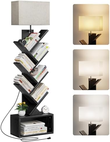 6 Tier Tree Bookshelf with Light, Small Bookcase Tower for Books/CDs/Movies, Sturdy Tall Floor Standing Book Organizer with Storage Cabinet for Living Room, Bedroom and Home Office (Black) … Read More