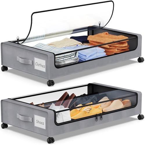 Under Bed Storage with Wheels, 2Pack Under Bed Storage Containers,Under Bed Shoe Storage Organizer with Clear Window&Label,Rolling Under Bed Storage Metal Drawer for Clothes,Shoes,Toys … Read More