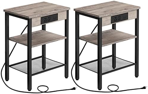 HOOBRO End Tables Set of 2 with Charging Station and USB Ports, 3-Tier Nightstands with Adjustable Shelves, Small Side Tables for Small Space in Living Room, Bedroom and Balcony, Greige BG112BZP201 … Read More
