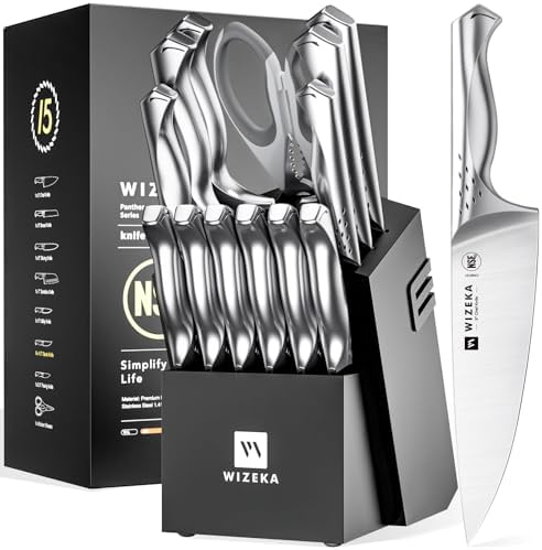 Kitchen Knife Set with Block, Dishwasher Safe 15 Pcs Professional Chef Knife Set with Knife Sharpener, Food Grade German Stainless Steel Knife Block Set, Jaguar Series … Read More