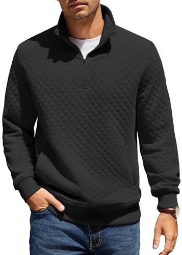 COOFANDY Mens Quarter Zip Pullover Quilted Sweatshirt Knit Long Sleeve Mock Neck Sweater Polo with Pocket … Read More