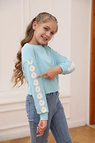 Dellytop Kids Crop Tops Girls Long Sleeve Tee Shirts Cute Daisy Pinted Clothes