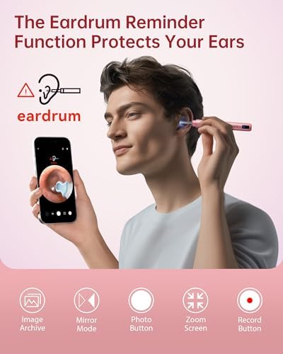 All-In-One Ear Spoon Ergonomic Design: Given the problem of falling ear scoops in the market, we have optimized and improved the ear camera and wax remover by firmly fixing the camera and the ear scoop as one. Equipped with Q-shaped ear spoons, gentle for ears; It also includes ten skin friendly and soft silicone ear pads, which are snug, soft, and elastic